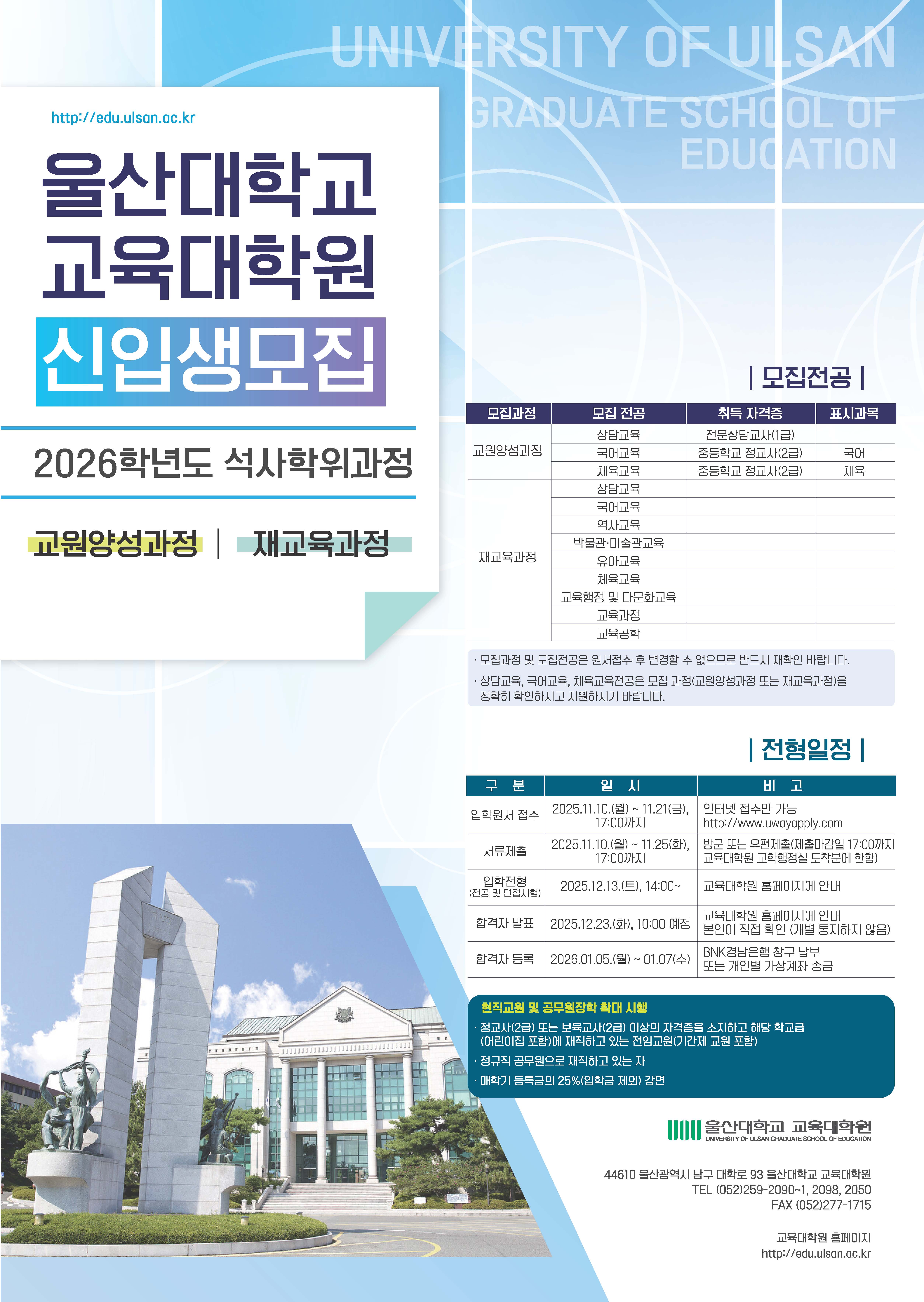[입학] 2026학년도 교육대학원 신입생 모집 안내 | |||||